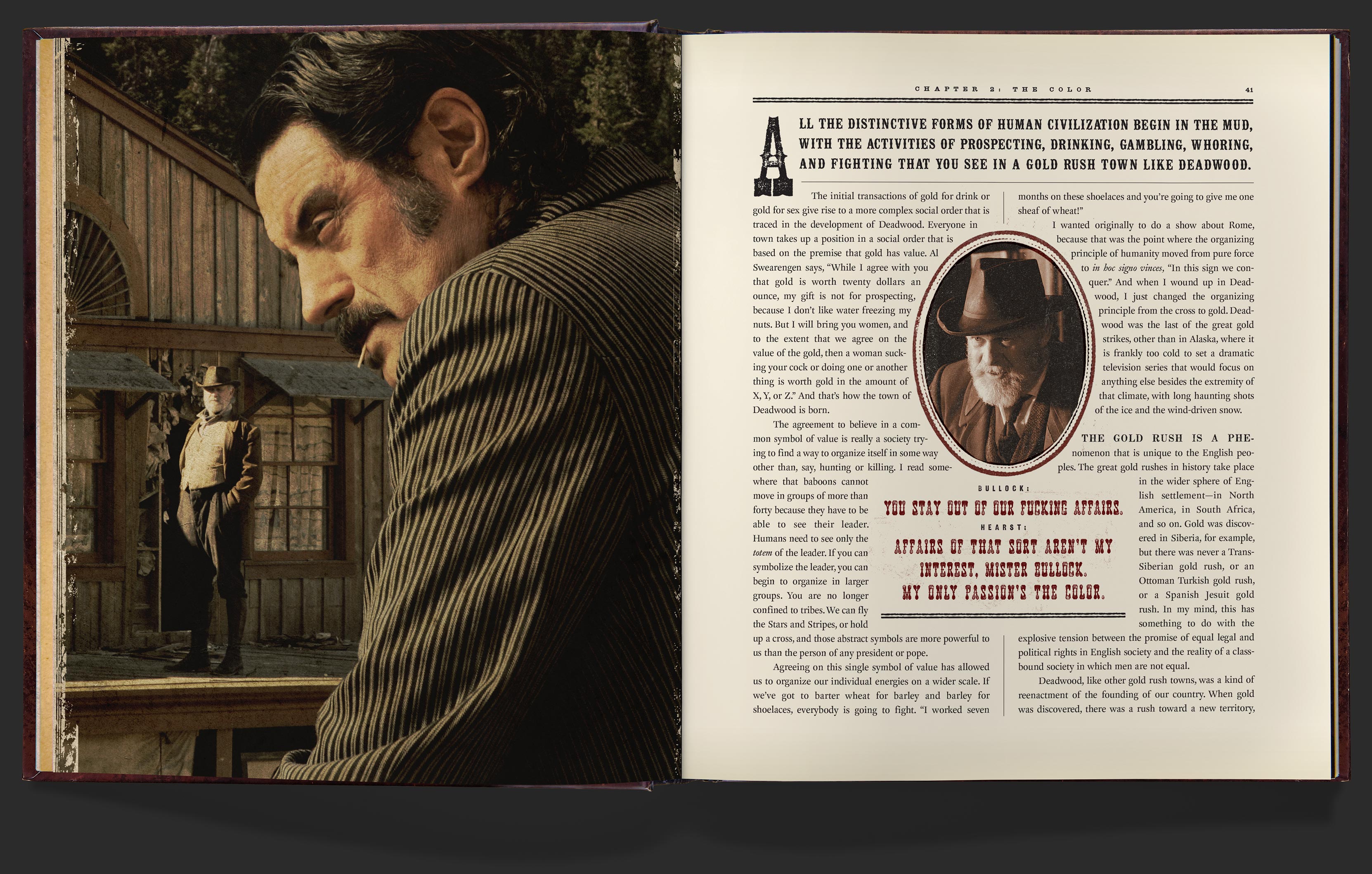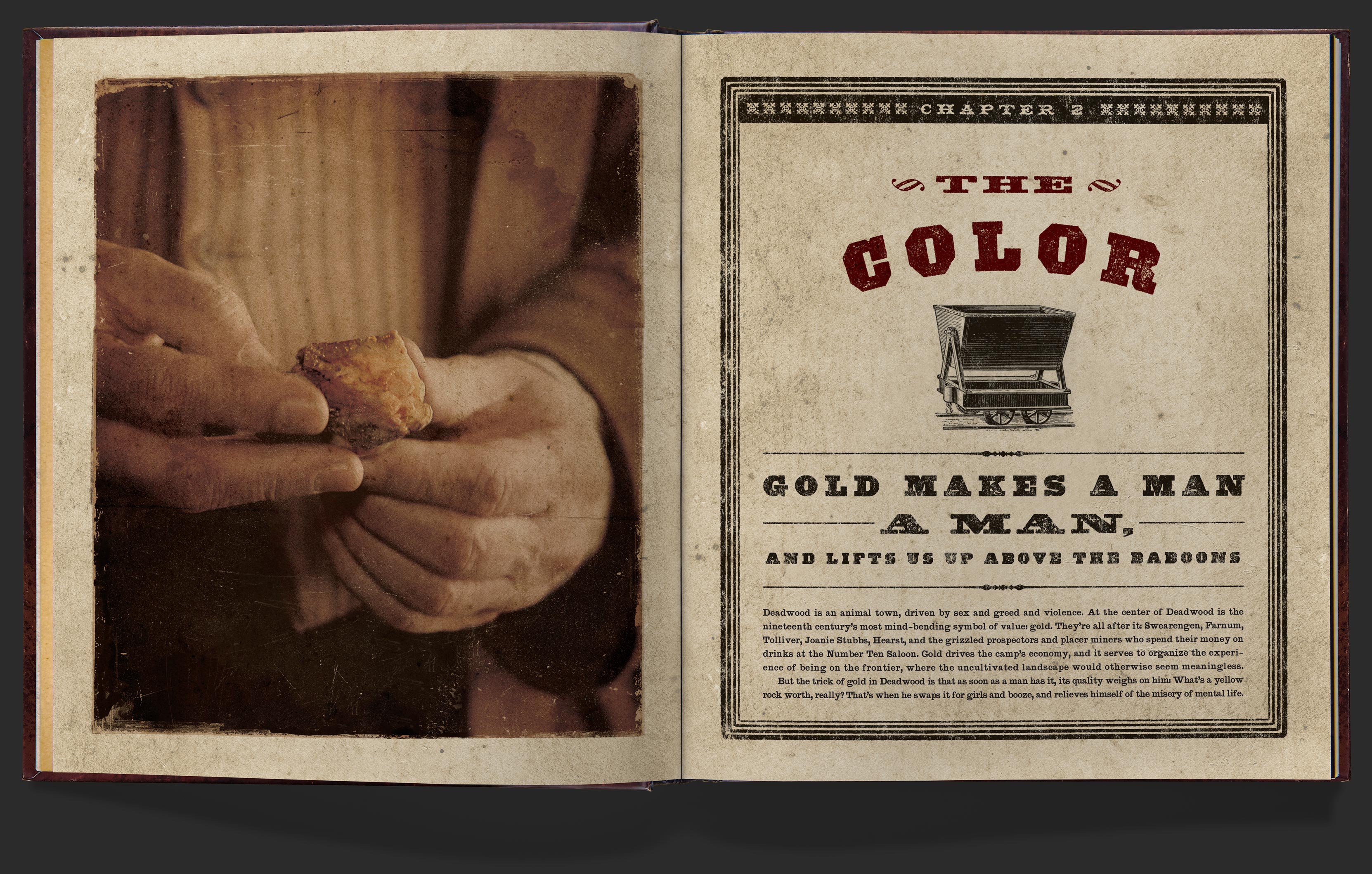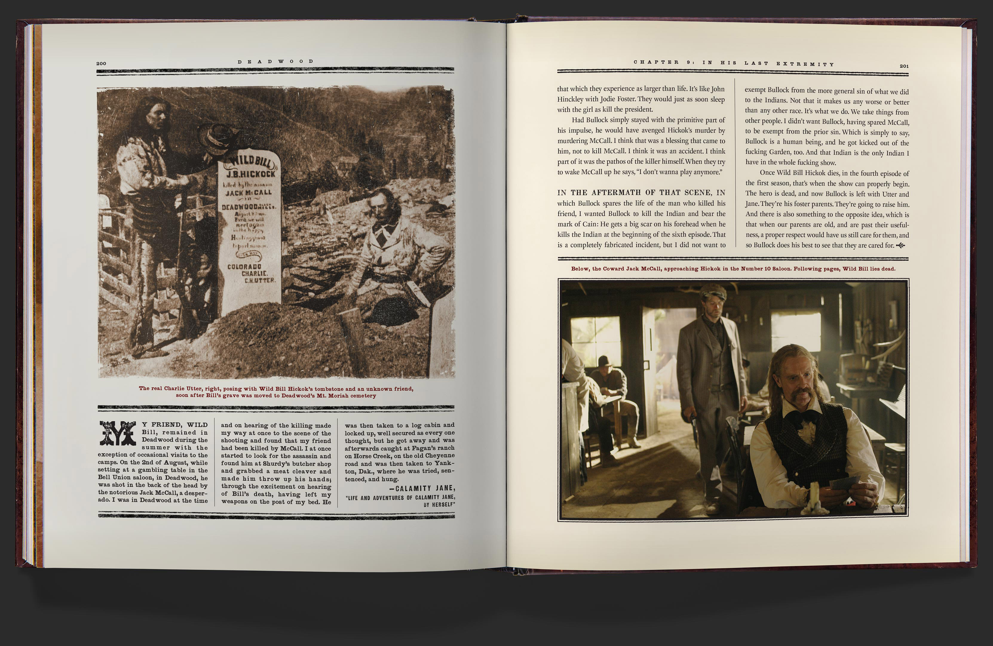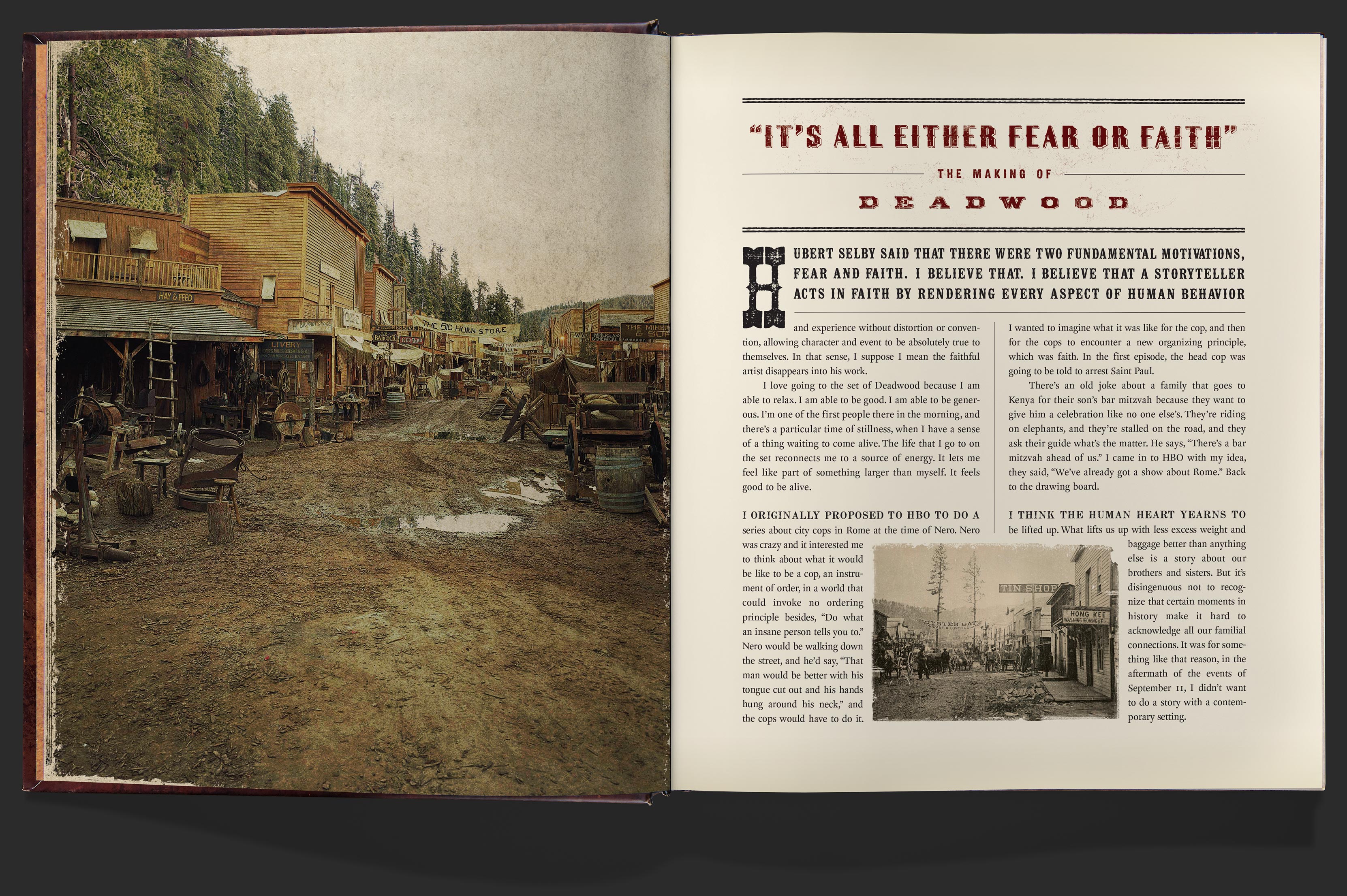 An official tie-in for HBO’s award-winning show Deadwood, this book provides insight into the making of the series and the historical figures who inspired it. We aimed for the design to reflect the beautifully intricate printed materials of America in the 1870s, along with the raw violence and rugged mayhem of the show. To achieve this, we incorporated historically authentic typography, aged and distressed photos, and even the occasional splattering of blood.