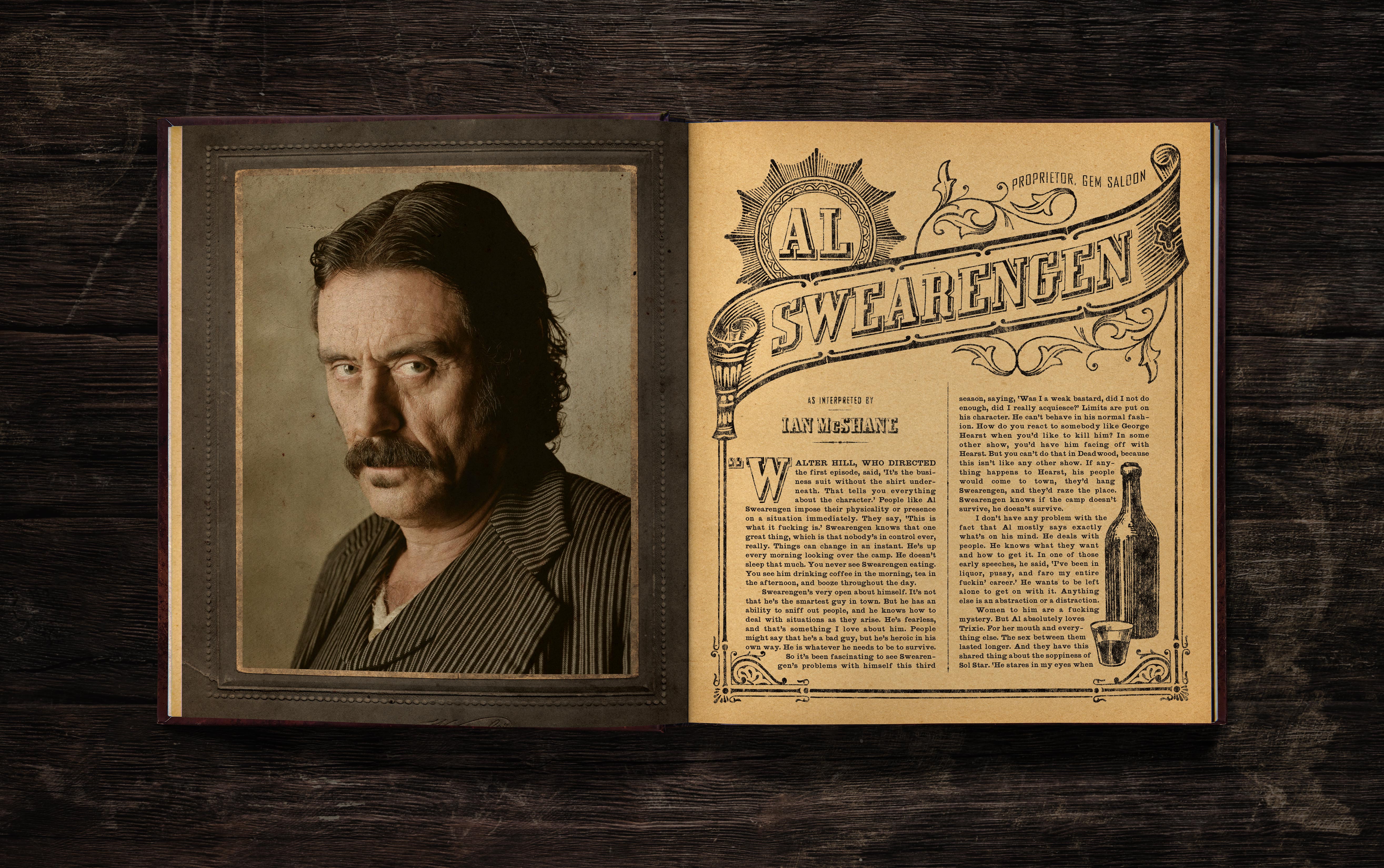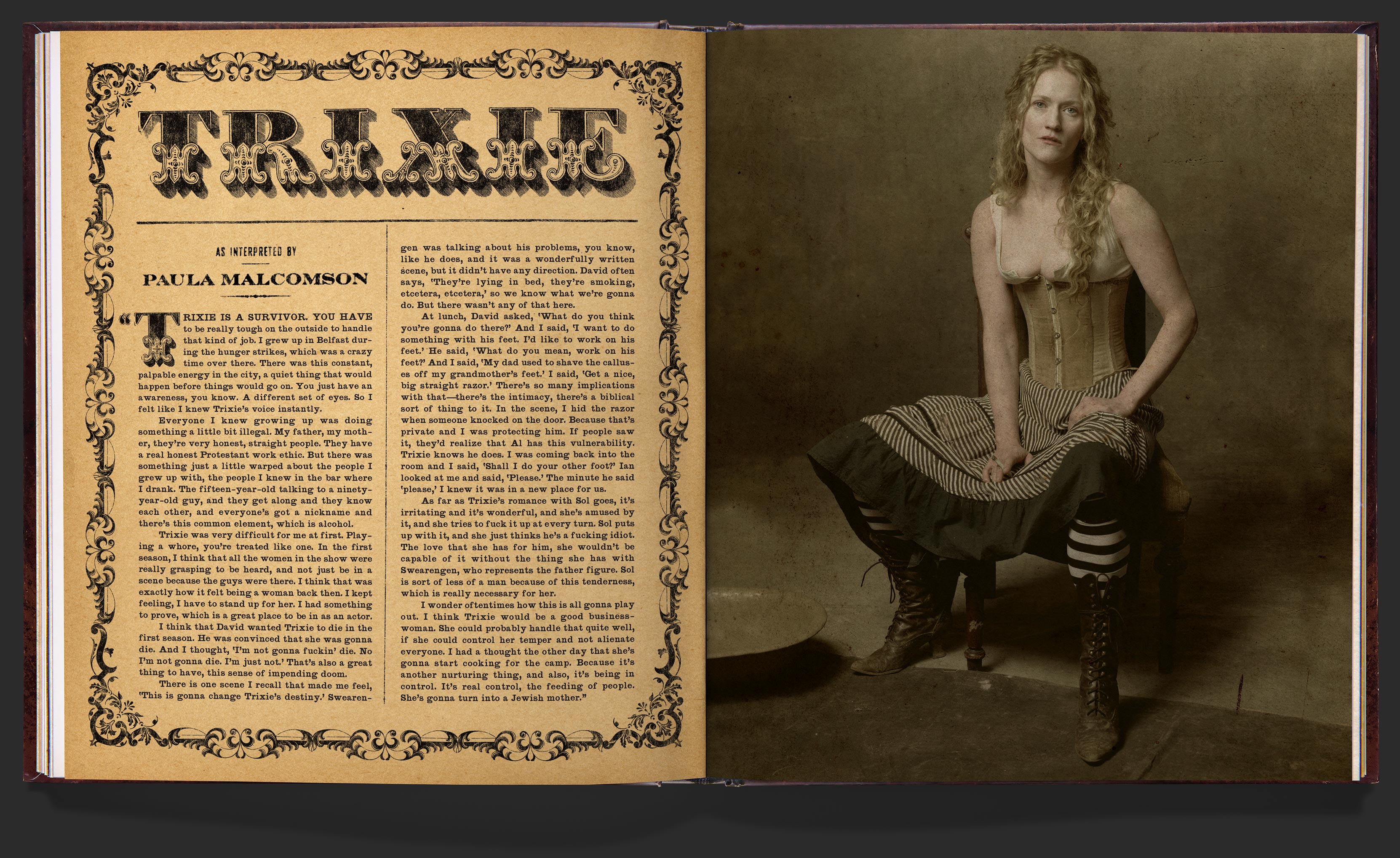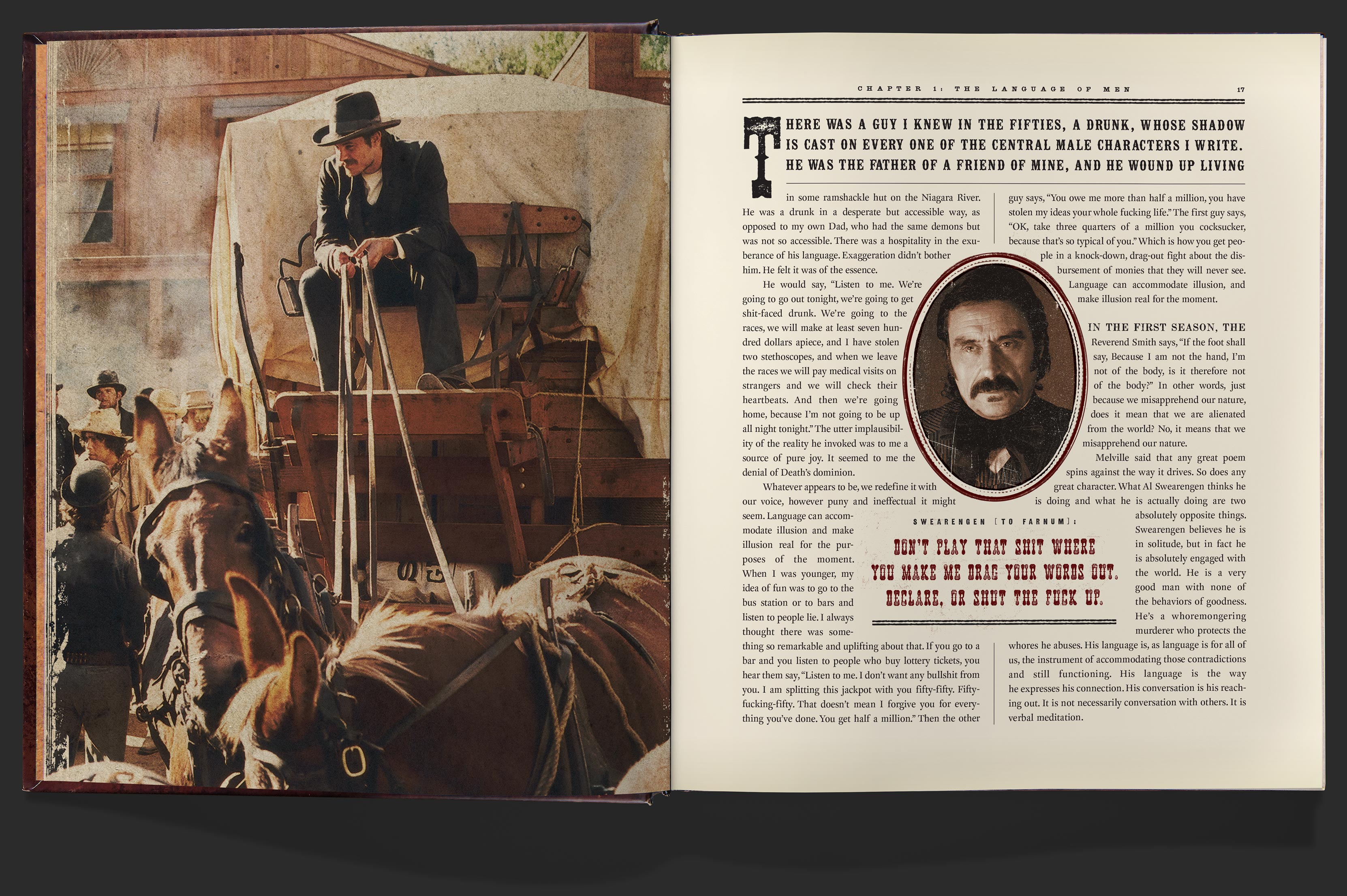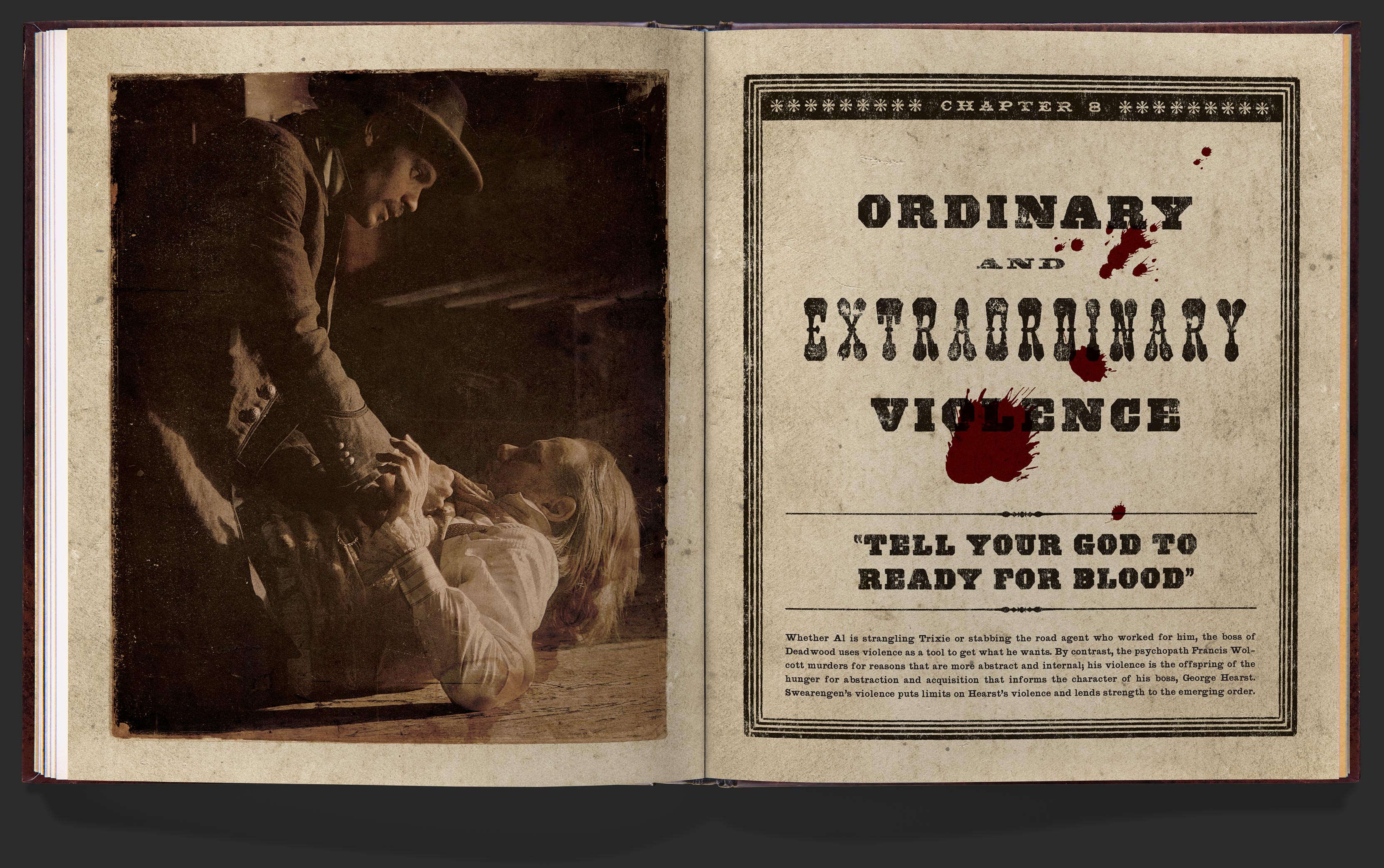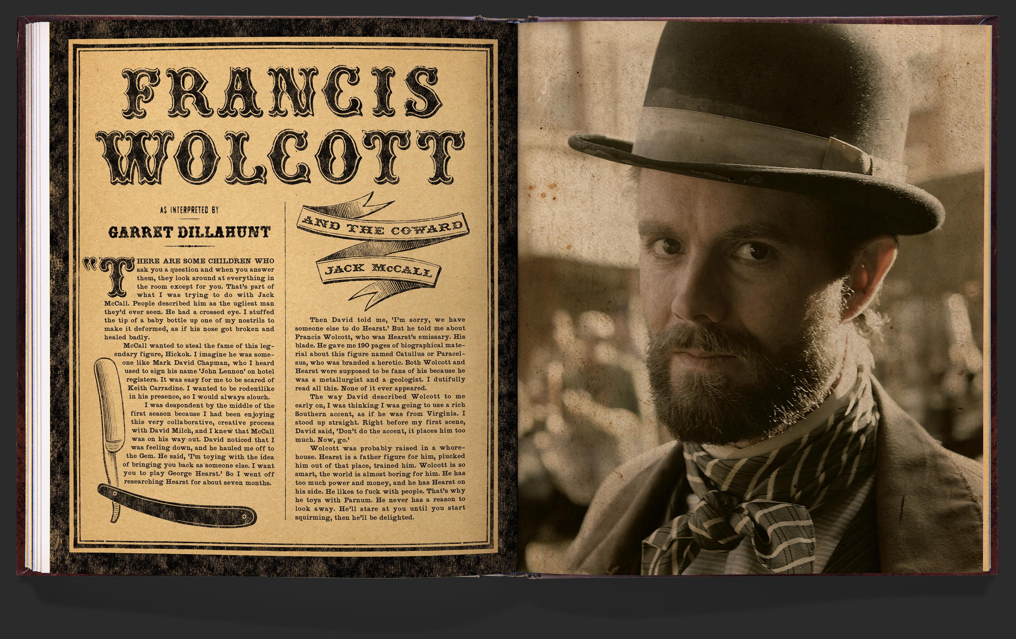 An official tie-in for HBO’s award-winning show Deadwood, this book provides insight into the making of the series and the historical figures who inspired it. We aimed for the design to reflect the beautifully intricate printed materials of America in the 1870s, along with the raw violence and rugged mayhem of the show. To achieve this, we incorporated historically authentic typography, aged and distressed photos, and even the occasional splattering of blood.