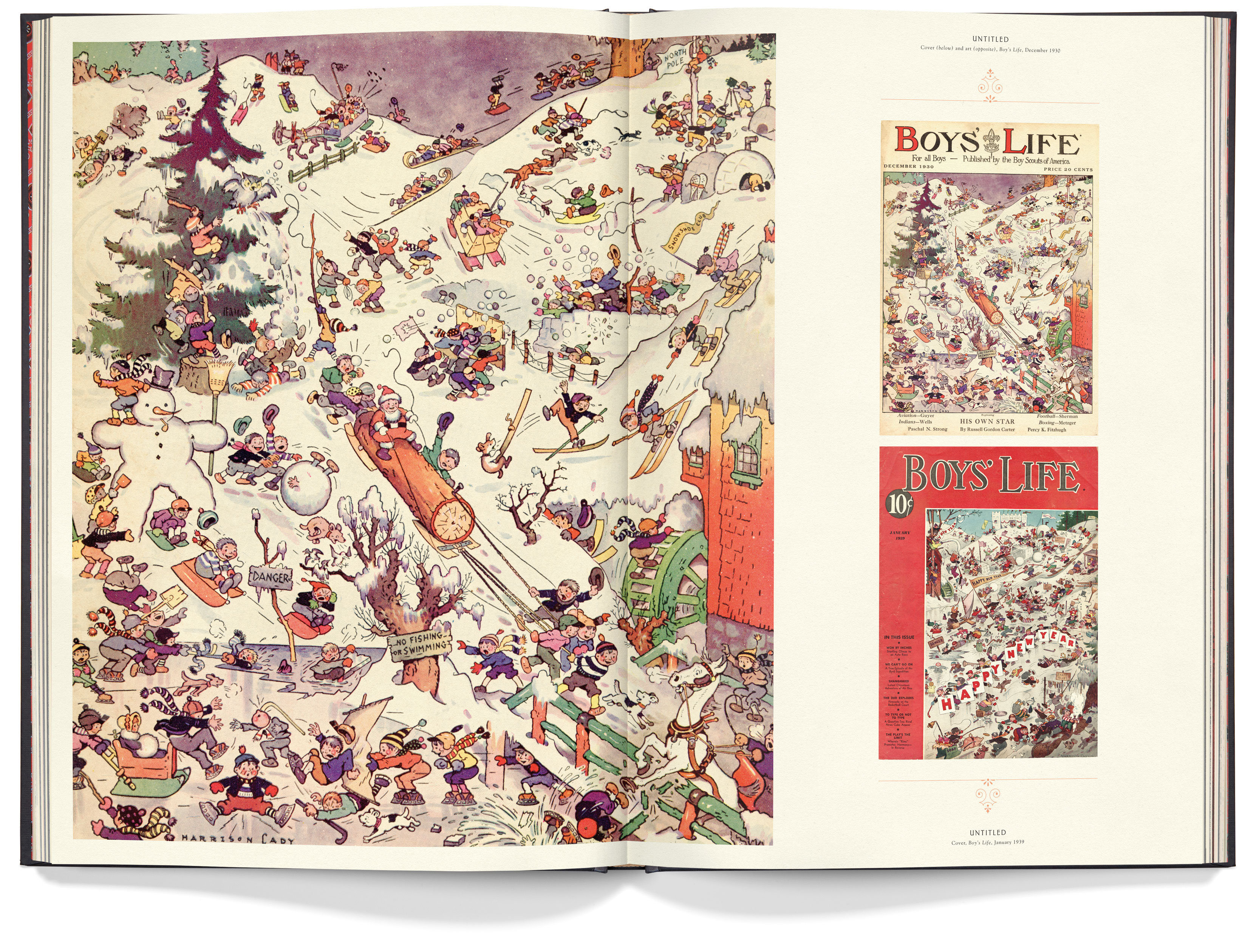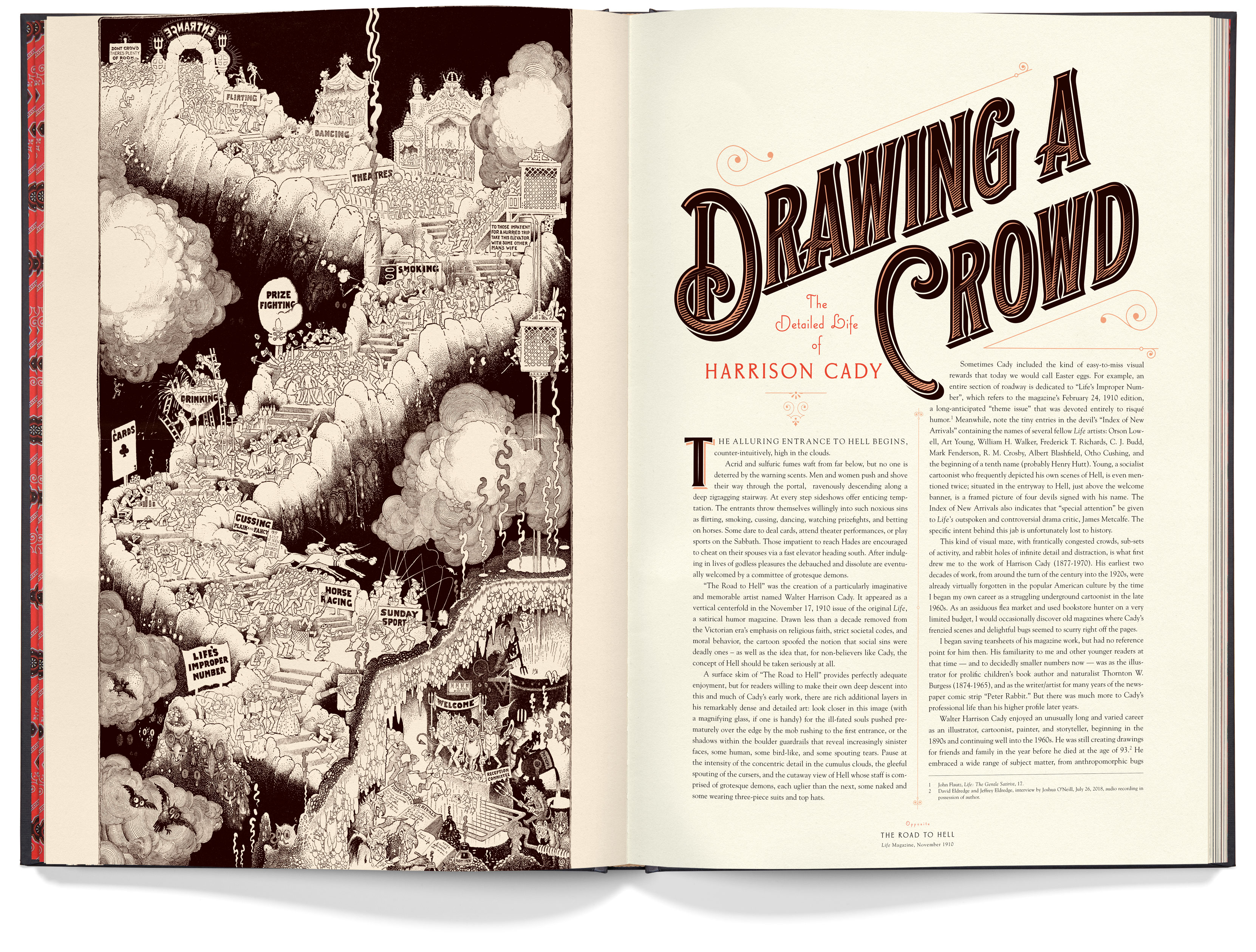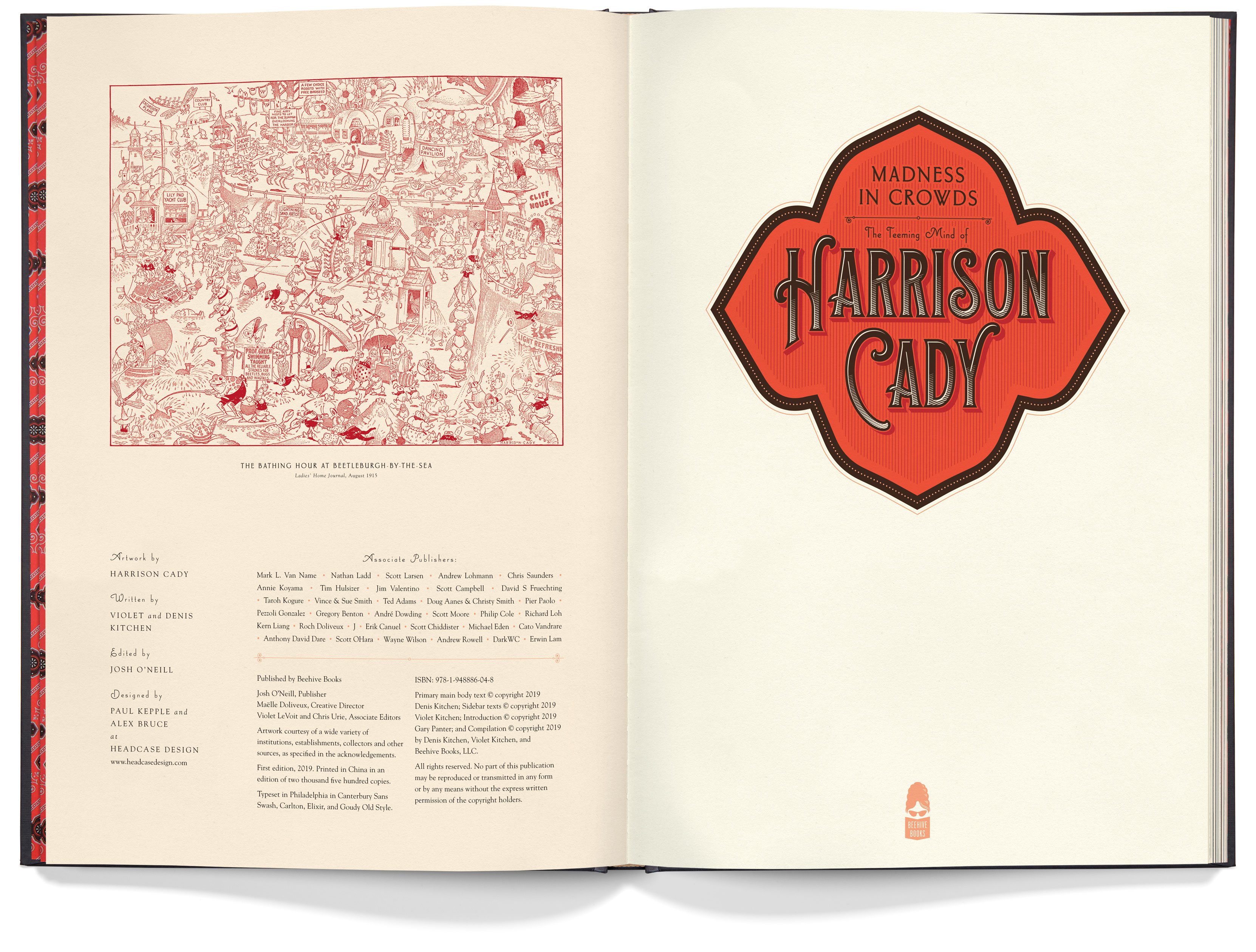 Madness in Crowds: The Teeming Mind of Harrison Cady is a commemorative monograph collecting early 20th century illustrator Harrison Cady’s lifetime of work. The king of cute creatures, contraptions, and crowd scenes, Cady’s work includes biting political commentary for “Time” magazine and joyously chaotic covers for “Boys’ Life” and “The Country Gentleman.”
