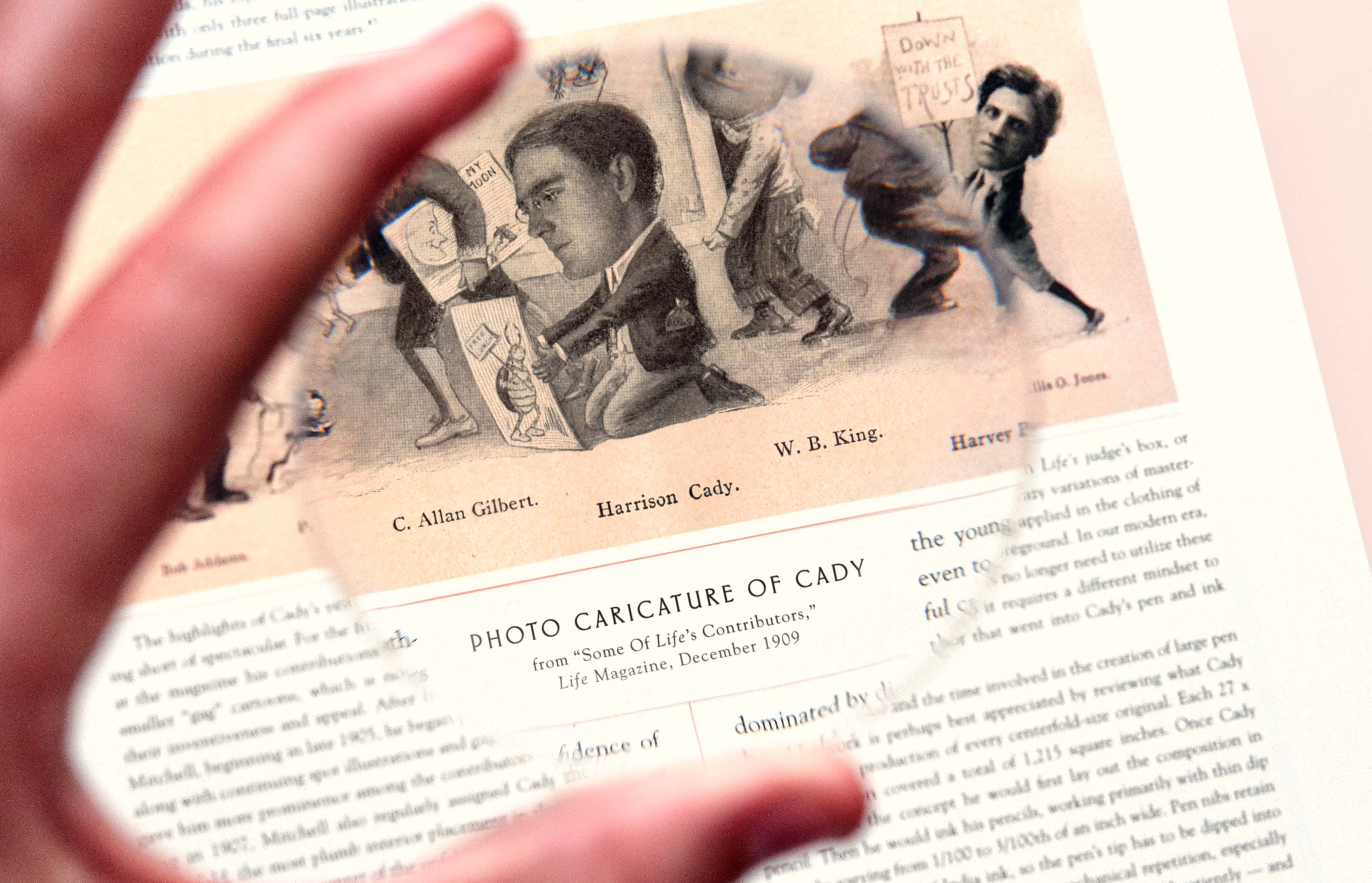 The magnifier is particularly useful to help enjoy the galleries of Cady’s preciously tiny comic panels, as they are reproduced at actual size.