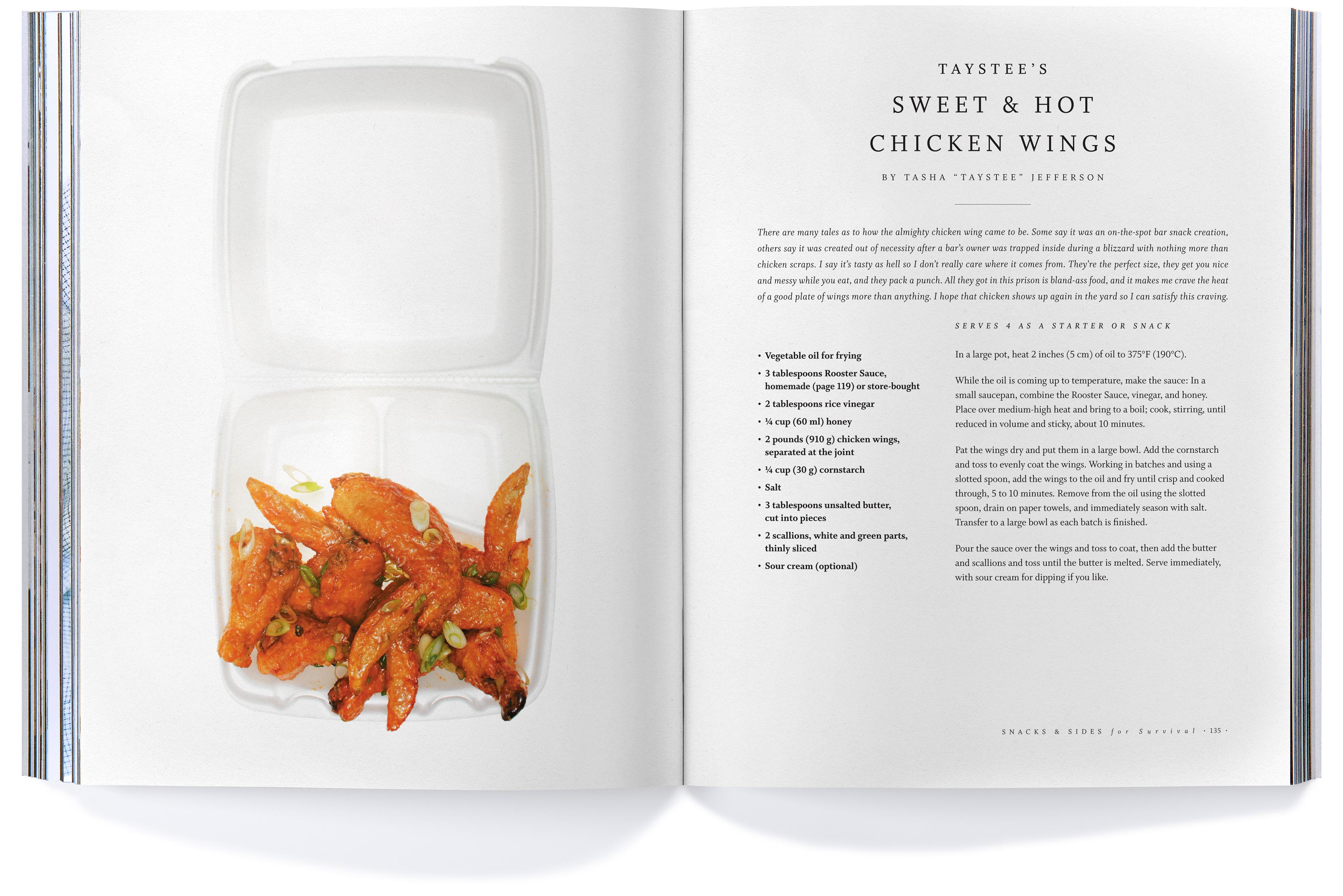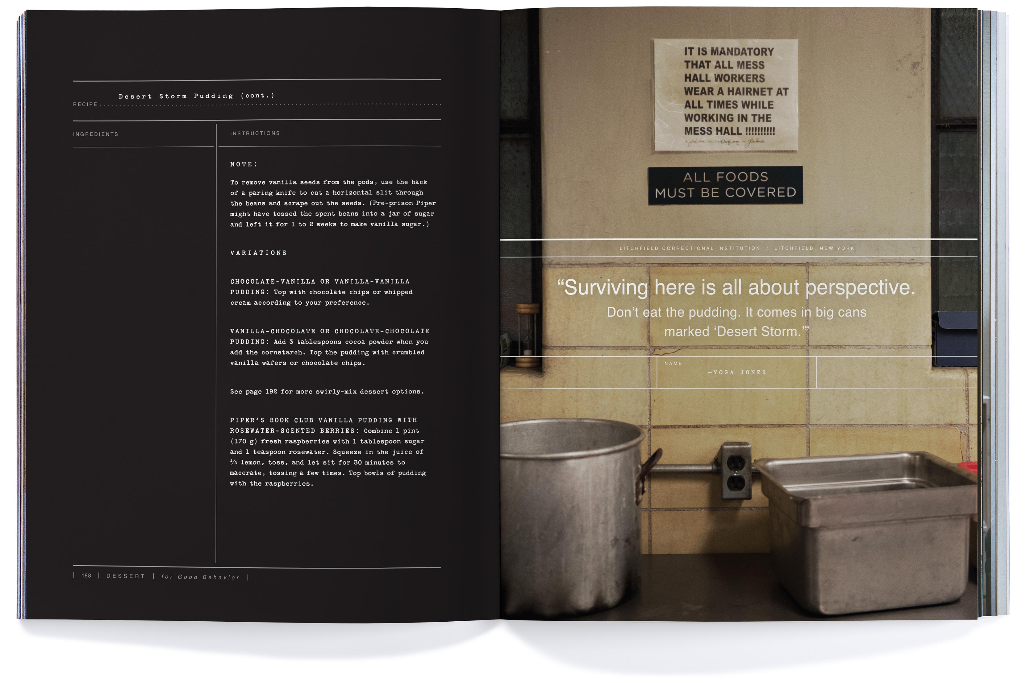 Not all the dishes featured are tied to characters or scenes set within the prison. These recipes were photographed on a lightbox, creating a dreamy aesthetic that represents the kind of food the inmates fantasize about, in stark contrast to their dreary reality. This adds a welcome contrast to the cafeteria-styled shots.