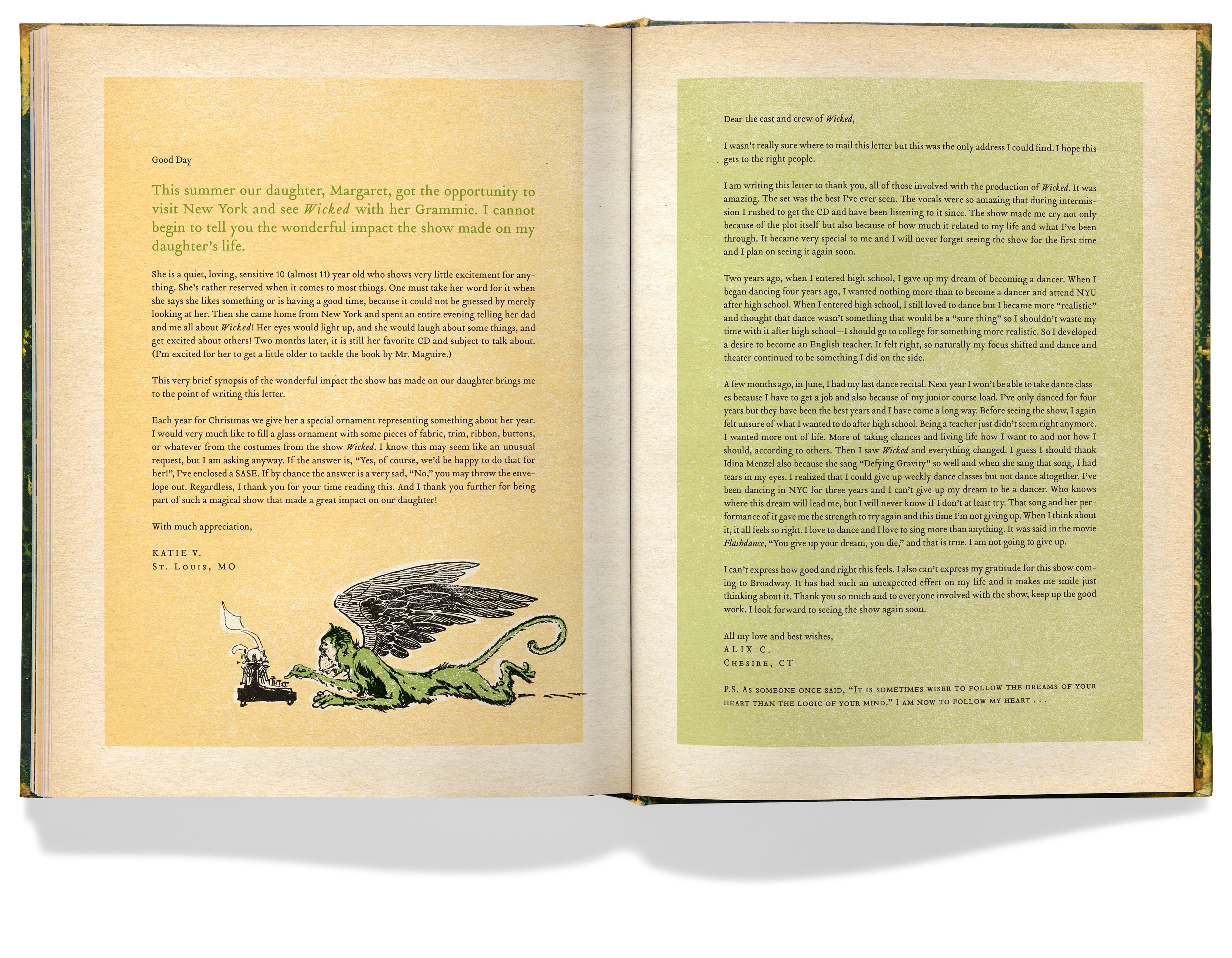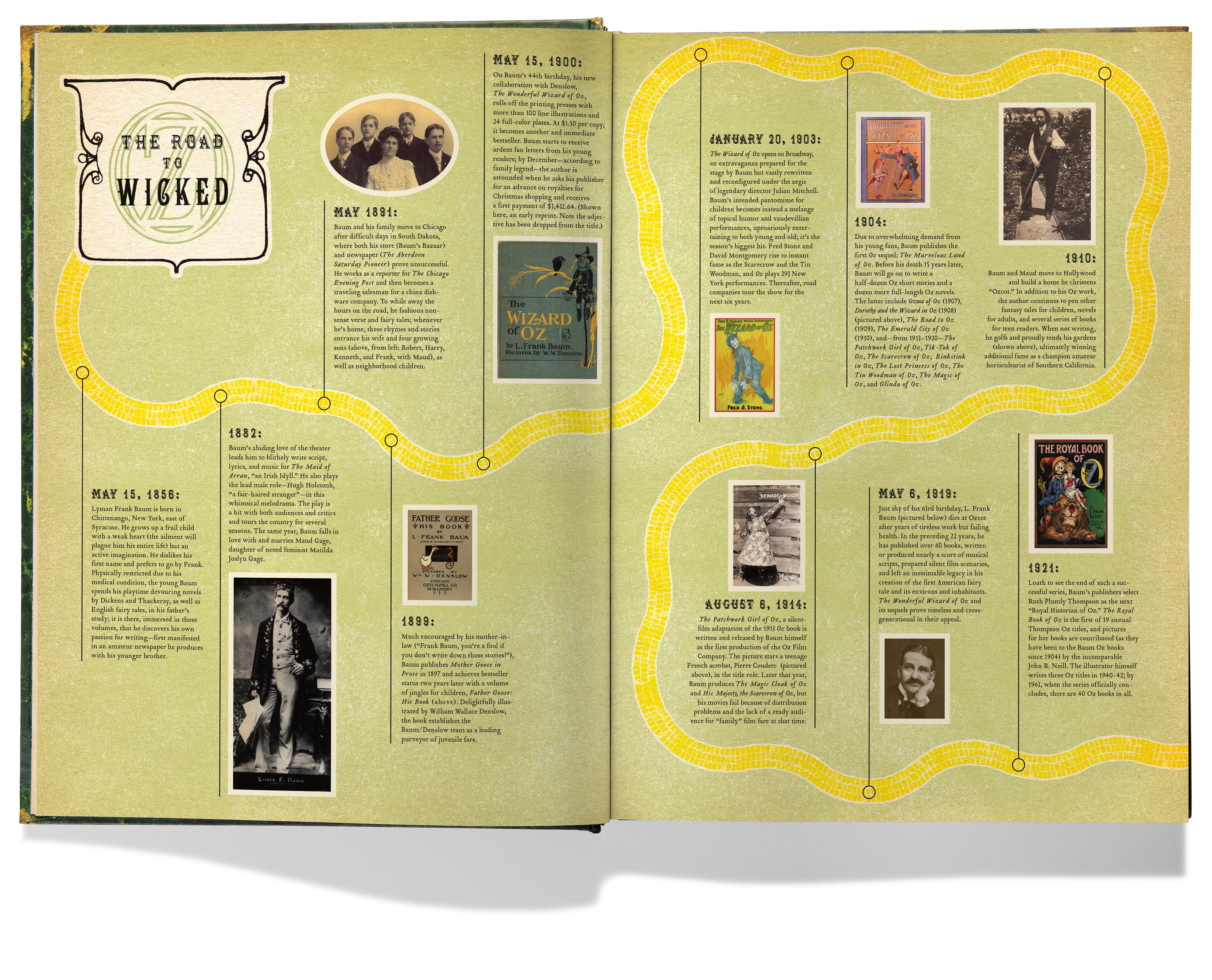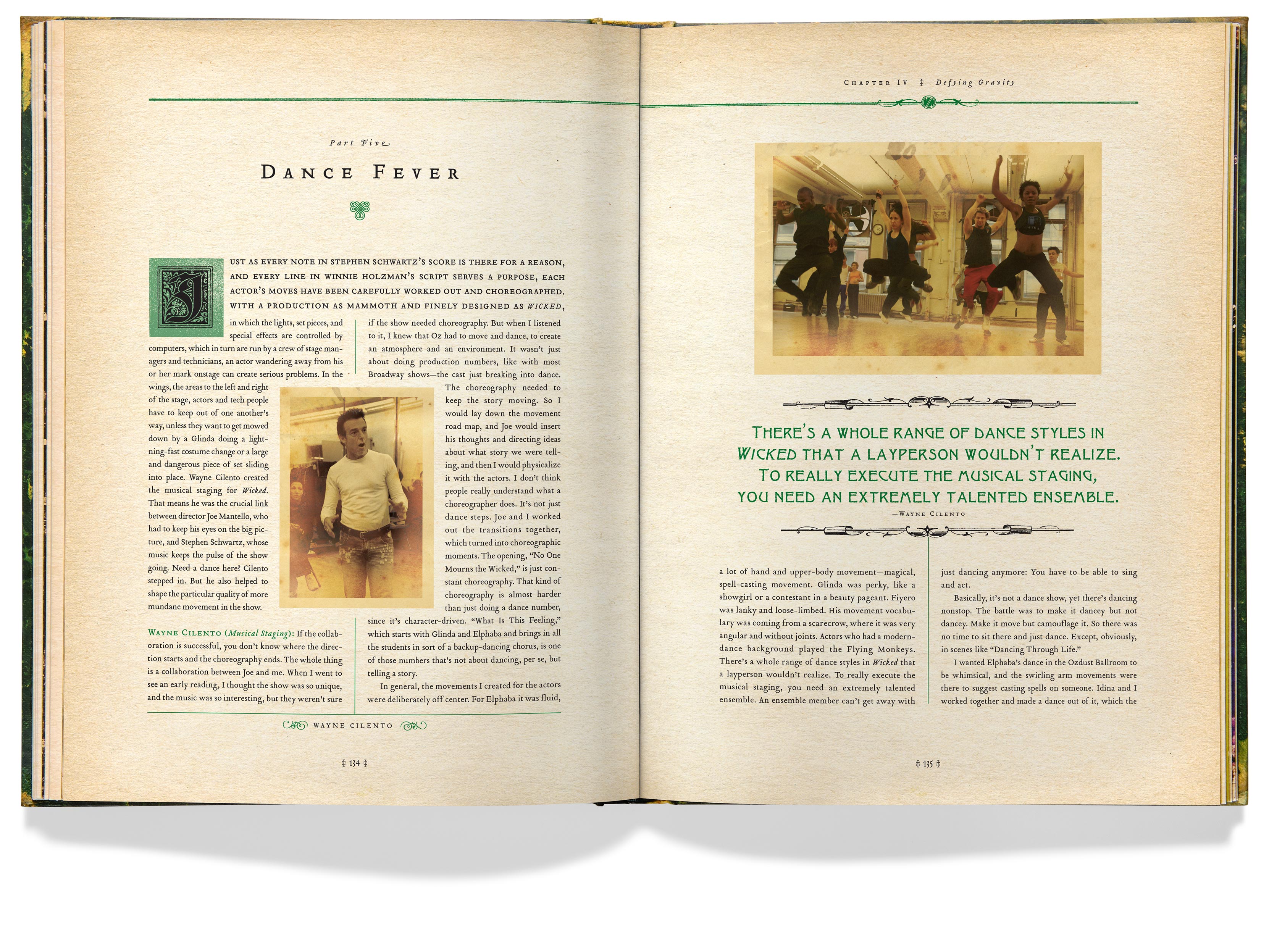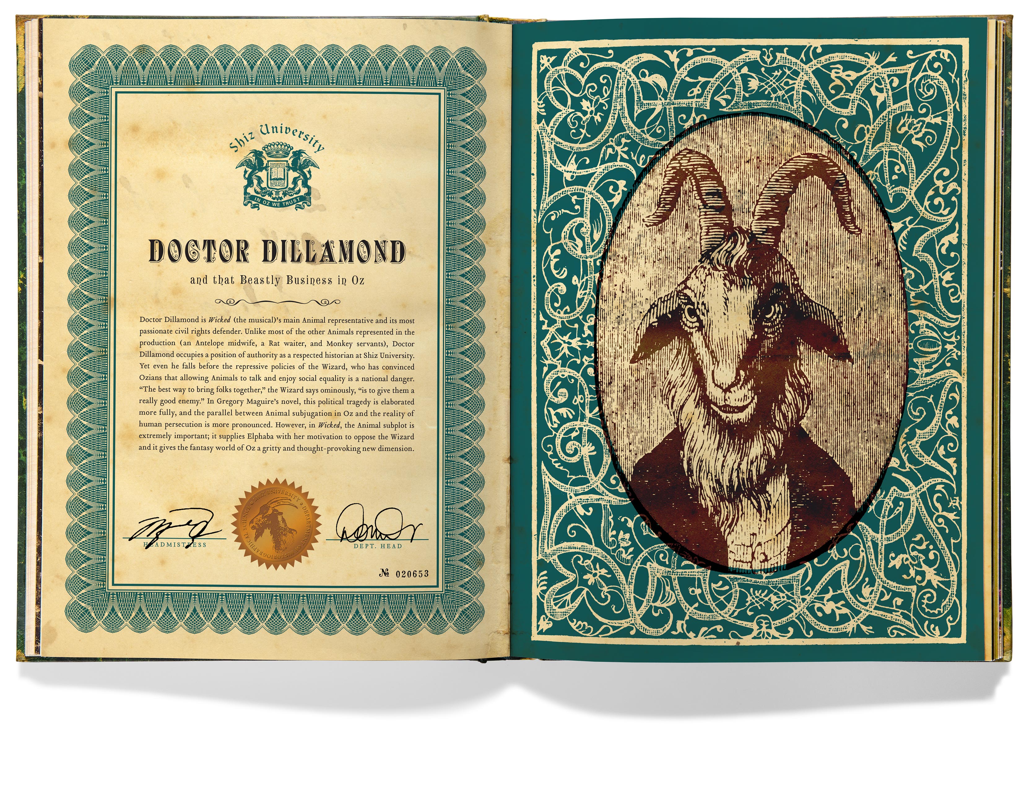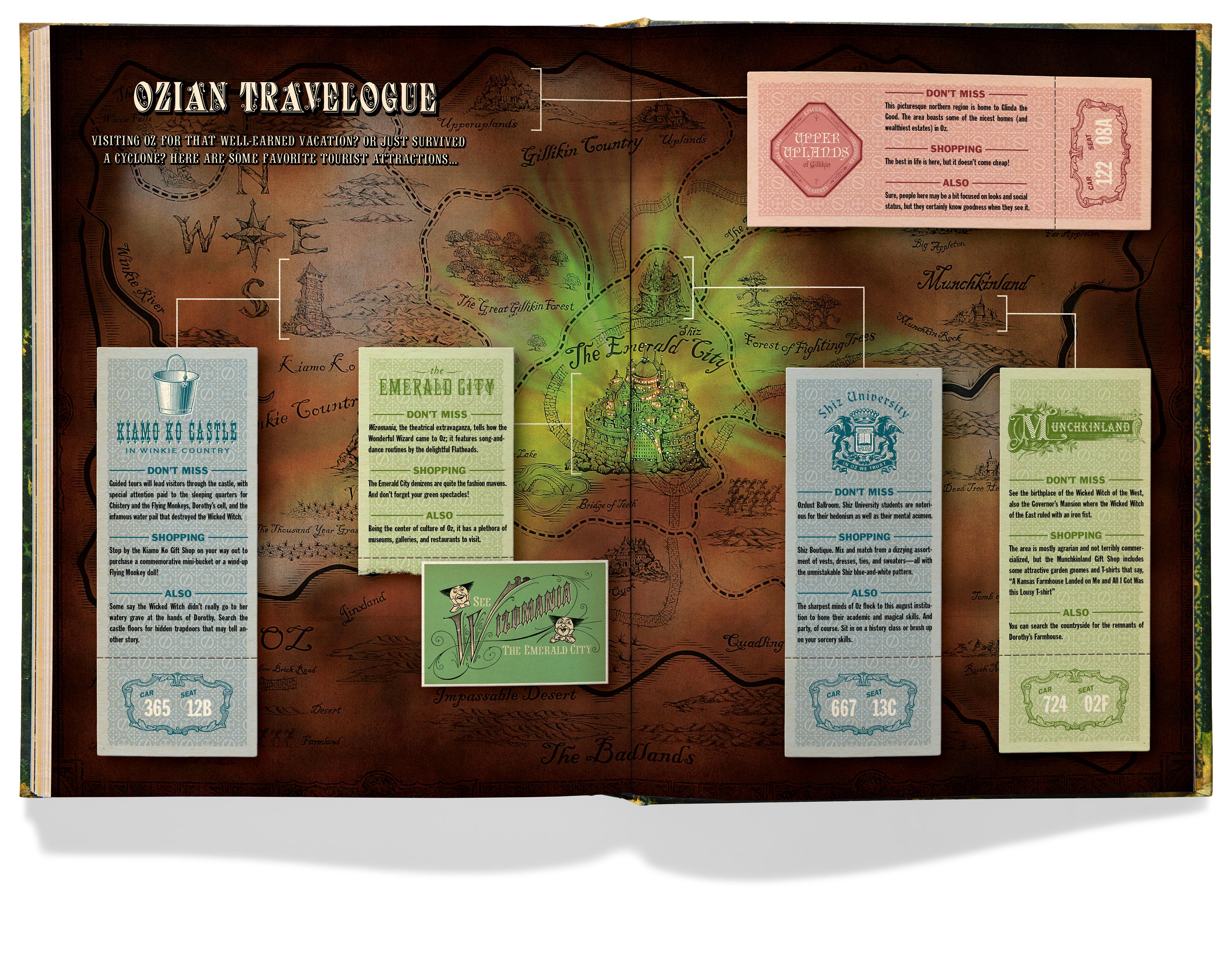 Wicked: The Grimmerie—the ultimate keepsake for fans of the Broadway sensation—is designed to look like the ancient spell book of the main character, Elphaba (the Wicked Witch of the West). To capture the whimsical yet somewhat dark tone of the play, we juxtaposed fanciful Ozian illustrations with alchemic design elements, and painstakingly aged each page of the book.